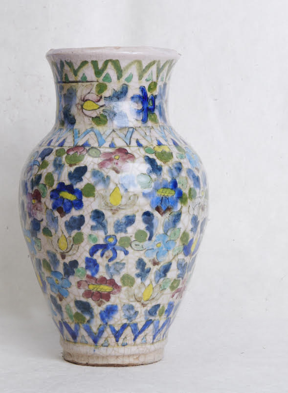 Description Description Vase en céramique, décor floral peint sous glaçure transparente ; fait main à Ispahan Hauteur 30-Diamtére 20 (cm) Réf: T34